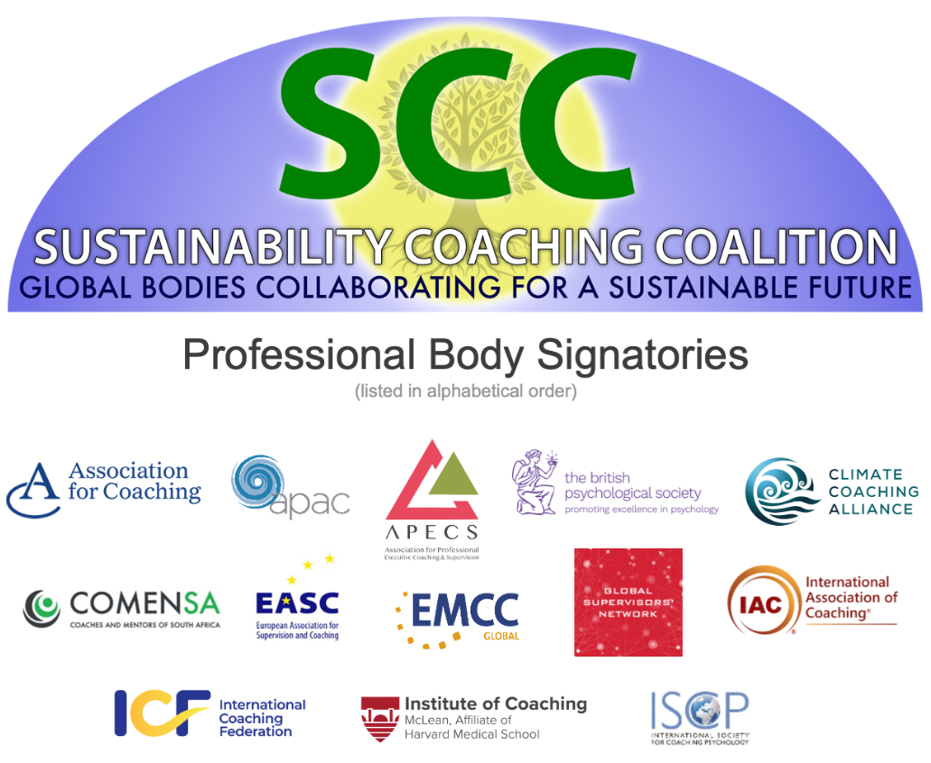 The Sustainability Coaching Coalition (SCC) represents a collective of global professional bodies in the areas of coaching, coaching psychology, mentoring and supervision who are collaborating for a sustainable and regenerative future.